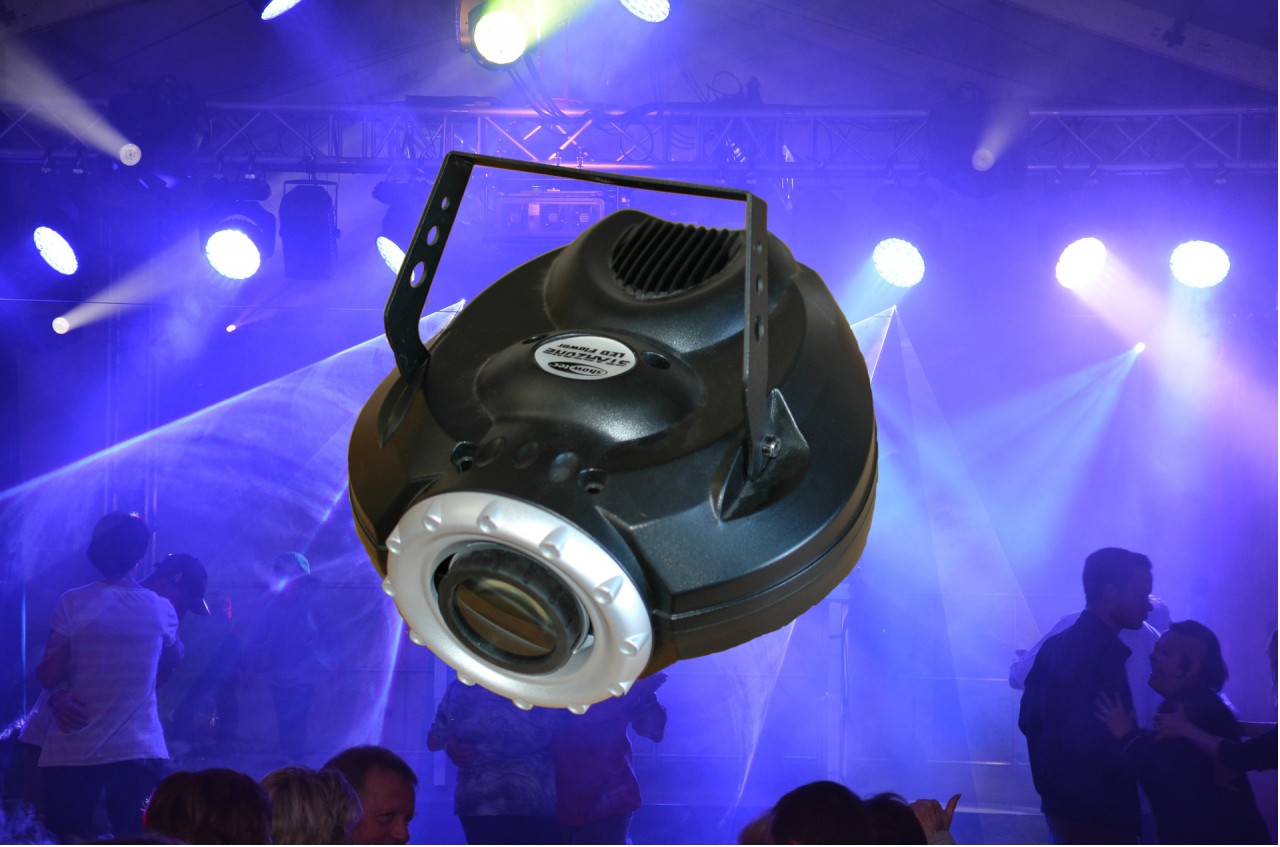 Musikgesteuerte Farbwechsel und bewegte Lichtstrahlen